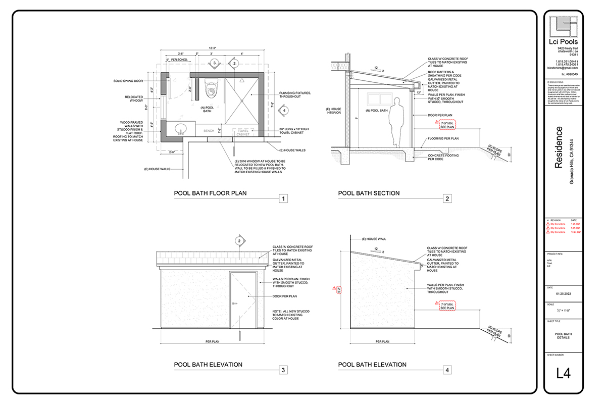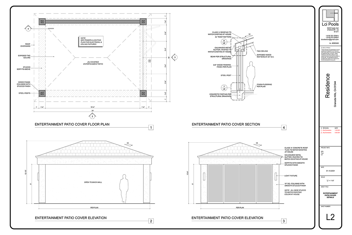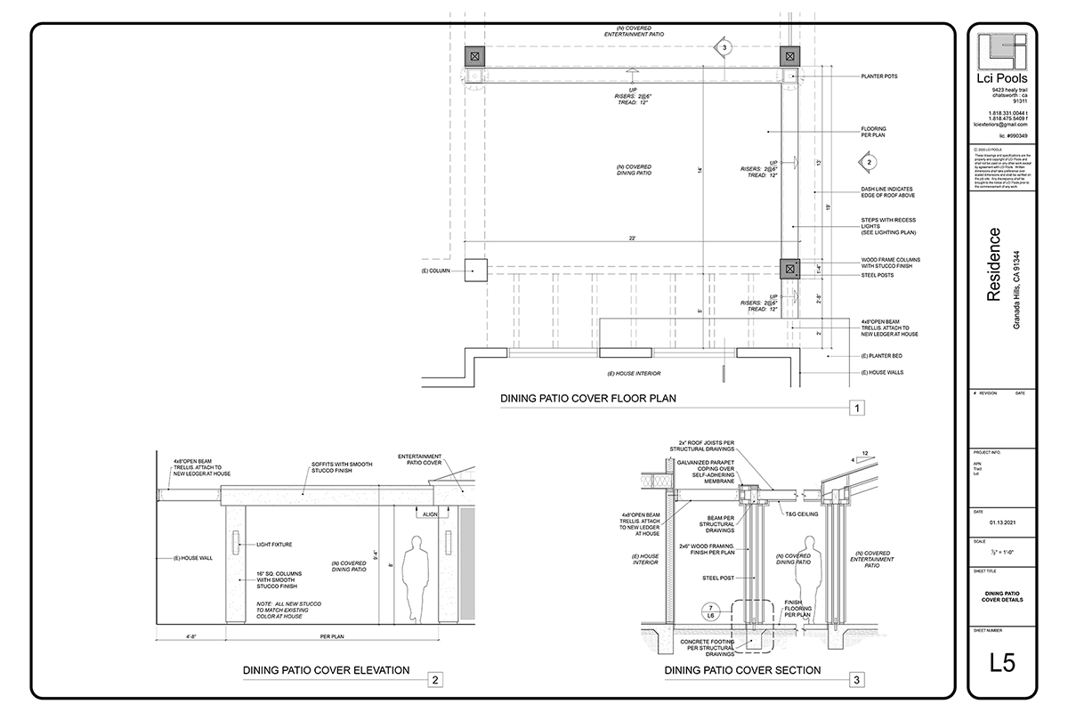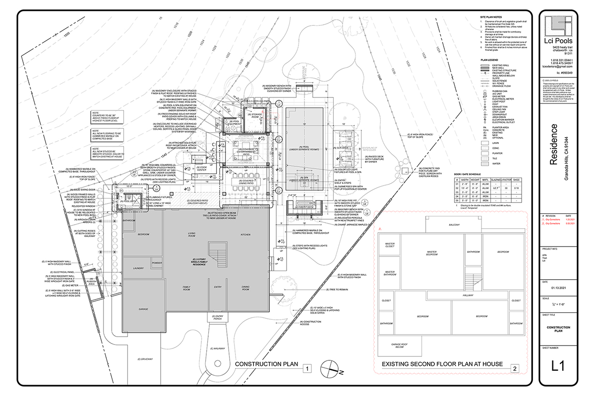 autocad drafted pool and landscape plans for schematic and construction purposes, including hardscape, planting, drainage, and irrigation plans